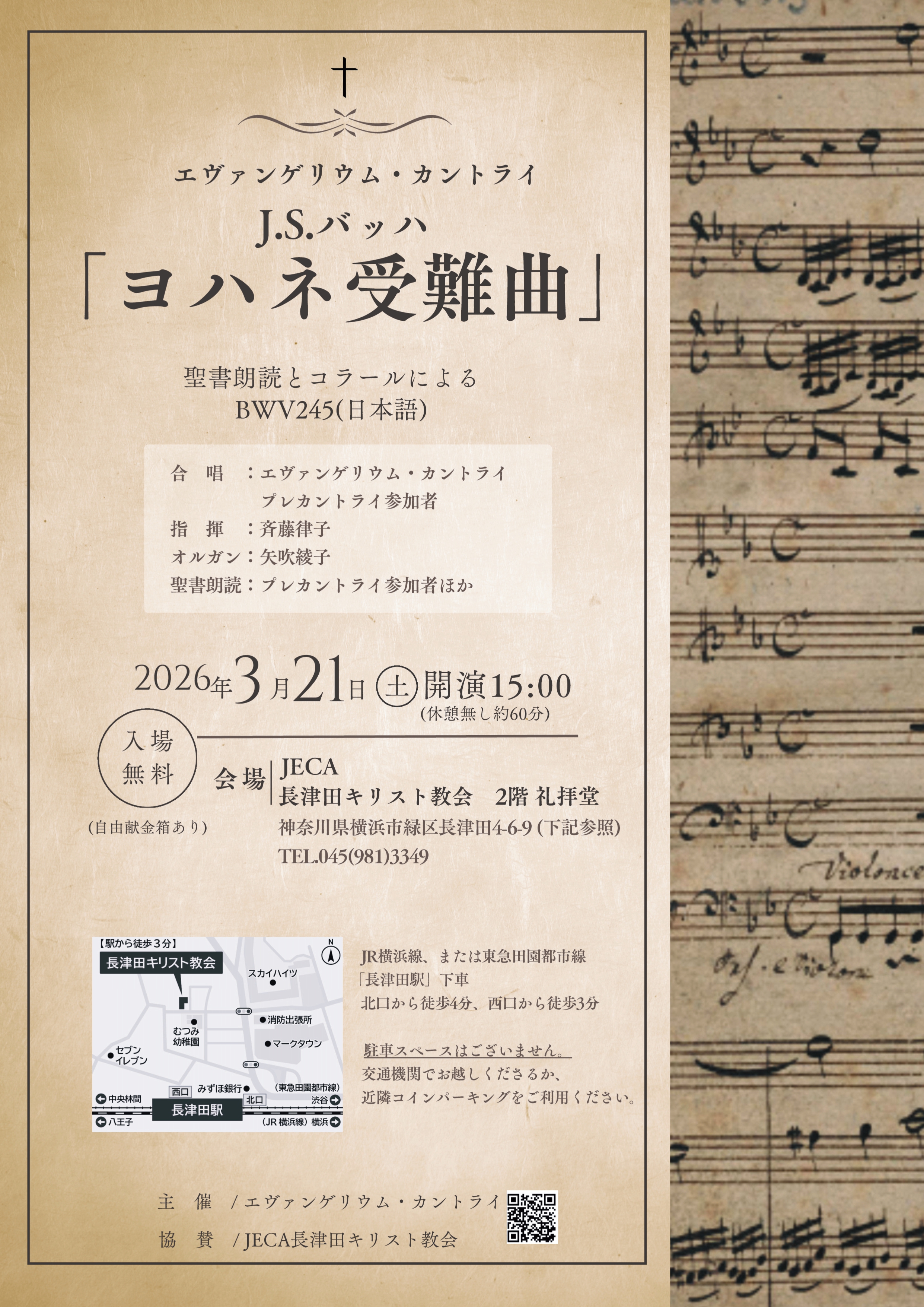 3月21日(土)午後3時〜 ヨハネ受難曲演奏会を行います。 詳しくは上記の案内をご覧ください。 |